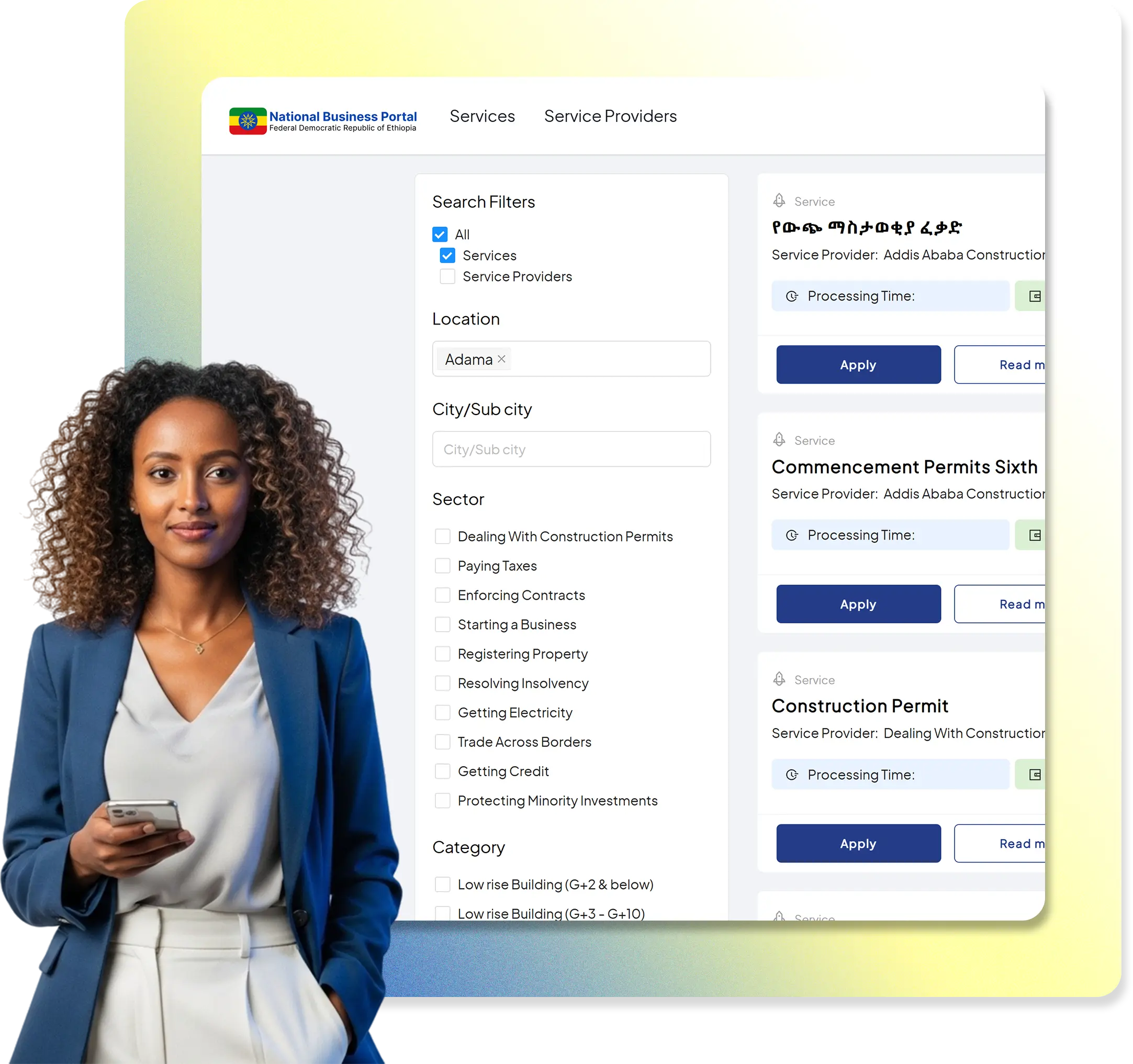 As part of Ethiopia’s Ease of Doing Business (EoDB) reforms, the Ministry of Innovation and Technology (MInT) sought to create a unified digital interface for accessing government services. Historically, business owners faced inconsistent, paper-based procedures that varied widely across cities and regions.